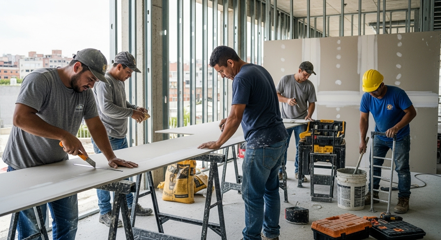 en pinturas, drywall, PVC presión/sanitario, cubiertas, fijación y herramientas.